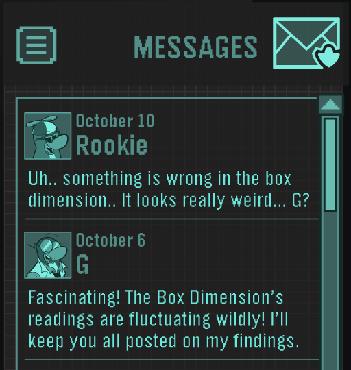 The Box Dimension is also currently currently turning green and is getting worse! We've been receiving messages from Gary and Rookie via the EPF phone over the past week, so make sure to keep checking back..