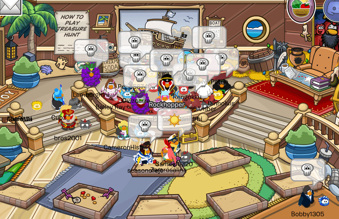 As the migrator was already docked on the island, it made sense for Rockhopper to be the visiting mascot for this party! He arrived with a brand new adventure background. Here are some moments from the visits!
